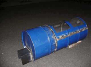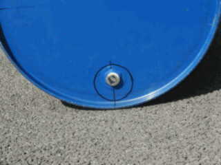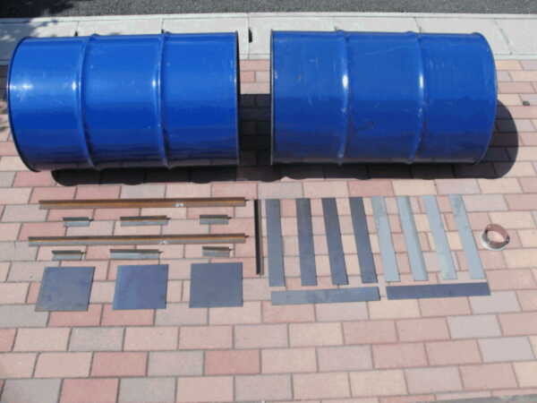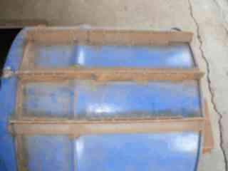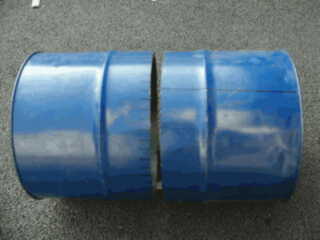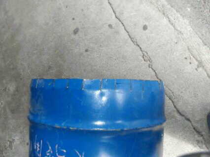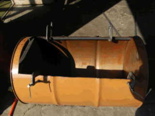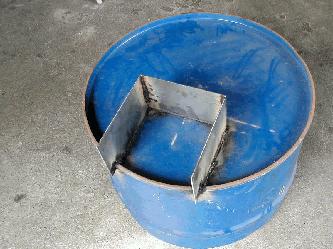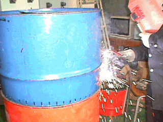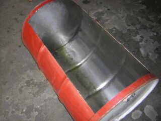 | 5. Scribe lines for the covers at 120 degree sections. | 6. Drum can is cut into two parts: left side becomes the firewood combustion