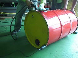 Warning: Remove any oil remaining in the drum cans to prevent explosions.
