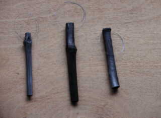 竹を焼く前に穴を開けると簡単です。炭にしてからはシリカのために硬くなりダイアモンド・ドリルでないと穴が開けられません。